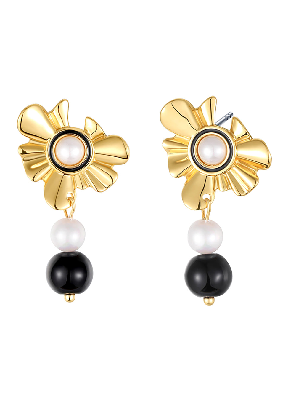 The minimalist half hoop earrings hanging a delicate hollowed camellia, tiny cubic zirconia embellish the camellia. The elegant and fashionable earrings are suitable for daily wear.