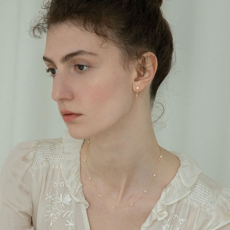 The CZ chain earrings which their minimalist-style design makes them trendy and perfect to wear on your daily looks, but not as simple as normal stud earrings or threader earrings, they are more chic and unique, as well as easy to style with other earrings.