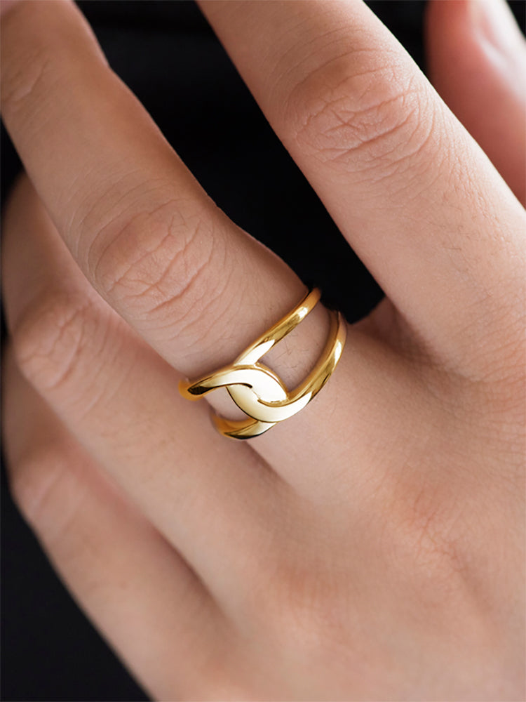 This simple double ring features real gold plated copper and is easy to stack with different rings. Its simple design makes it the perfect accompaniment to any outfit.